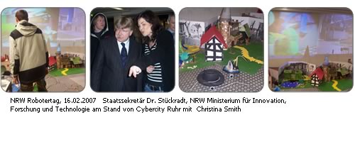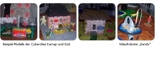 2. Teil der Projekte: Der Bau der CYBERCITY-Modelle Beim Bau ihrer CYBERCITES bauten die Schüler markante Gebäude und für sie wichtige Orte ihrer Städte nach und fügten Elemente ein, die es hier noch nicht gibt, die sie sich aber für die Zukunft wünschen und vorstellen. So entstand ein buntes und faszinierendes Bild der Revierstädte der Zukunft. Manches gefiel den Schülern so gut, dass es in unveränderter Form seinen Platz in der „Stadt der Zukunft“ behaupten konnte. Hierzu gehören z.B. die Zeche Zollverein in Essen, die Siedlung Teutoburgia in Herne und die St. Georgskirche in Hattingen. Vieles wurde jedoch verändert. Aus der Akademie Mont Cenis in Herne wurde ein Bürgerzentrum, die Jamaika-Brücke in Herne-Crange wurde durch einen Sandstrand und eine Diskothek bereichert. Außerdem entstanden in Herne u.a. eine Lounge mit Open Air Bühne, ein Fußballstadion, eine Eishalle, ein Flughafen und ein riesiges buntes Hochhaus. Am Rhein-Herne Kanal in Essen lockt das „Kino am Fluss“, es gibt ein Ufo-Haus, eine Beamer Station und zahllose Gärten und Grünflächen, die viele Schüler in ihrer Umgebung besonders vermissen. Auf einer Brache des Geländes der Zeche Zollverein entstand ein futuristischer Wohnpark mit See und einem großen Jugendzentrum. Den Essener Süden durchziehen in Zukunft Wasserstraßen anstelle von Asphaltwegen. In Hattingen bauten die Schüler neben Häusern aus der Gartenstadt Hüttenau, die Burg Blankenstein und die Kirche St. Georg, sowie ein überdimensioniertes Schwimmbad mit Sandstrand, ein neues Einkaufszentrum und einen Freizeitpark. |